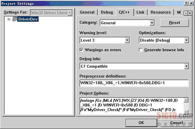 /nologo /Gz /MLd /W3 /WX /Z7 /Od /D WIN32=100 /D _X86_=1 /D WINVER=0x500 /D DBG=1 /Fo"MyDriver_Check/" /Fd"MyDriver_Check/" /FD /c