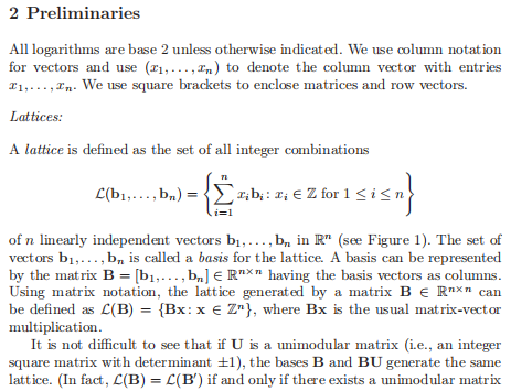 先摘自文献[1]中Lattice-based Cryptography章节引用的结论