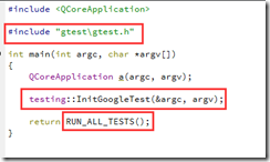 3.include gtest的文件件,并初始化gtest, 如下图:
