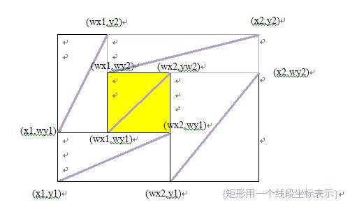 看了别人的代码,也算是有所收获,这种思路打死我也想不出来。 把牛人的代码传上来,以后有事没事看看。 学到了新的思路,也算一种收获吧 矩形分割: for(i从n到1)倒序染色。如果将要染色的部分与之前已经染色的(i+1~n)部分有相交(黄色部分),则把剩下的白色部分分割成4块矩形。递归求解。