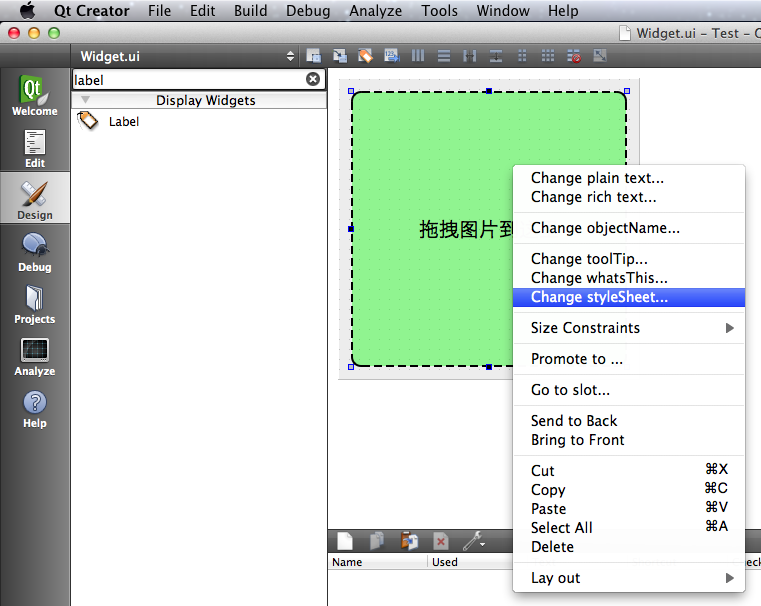 在此加个小知识点,给label加上style sheet,像CSS一样简单的就可以做出上图效果,按下图操作即可:
