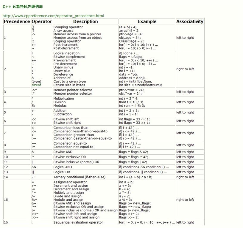 C++运算符优先级图标,以备不时之需。