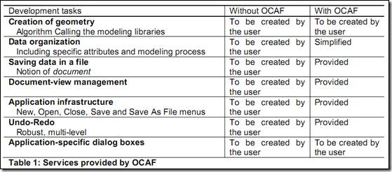 使用OCAF,程序设计者只需要关注功能和指定的算法,而不需要关注架构的问题,如Undo/Redo和程序数据的保存。在OCAF中上述功能已经为程序设计者提供了,这样就可以显著提高其生产力。