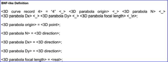 <3D curve record 9>定义了偏移曲线(offset curve)。偏移曲线的数据包含偏移距离d,偏移方向D和曲线数据<3D curve record>。偏移曲线是将<3D curve record>描述的曲线沿矢量