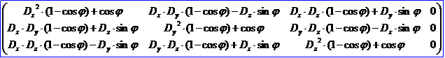 2) 绕任意轴旋转的变换矩阵,轴的方向为D(Dx, Dy, Dz),旋转角度ψ: