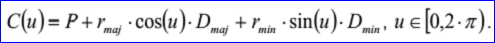 <3D curve record 8>定义了裁剪曲线(trimmed curve)。裁剪曲线数据包含:两个实数umin,umax和<3D curve record>,且umin<umax。裁剪曲线是将<3D curve record>描述的曲线B限制在[umin,umax]。裁剪曲线的参数方程如下所示: