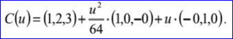 示例数据表示的裁剪曲线为:umin=-4,umax=5,曲线B(u)=(1,2,3)+u(1,0,0)。裁剪曲线的参数方程如下所示: