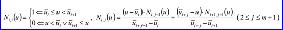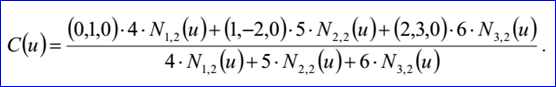 示例数据表示的B样条曲线为:有理标志位r=1,次数m=1,控制点数n=3,节点数k=5,带权控制点:B1=(0,1,0),h1=4,B2=(1,-2,0),h2=5,B3=(2,3,0),h3=6;节点及其重数u1=0,q1=1,u2=0.25,q2=1,u3=0.5,q3=1,u4=0.75,q4=1,u5=1,q5=1。B-Spline曲线的参数方程如下所示: