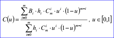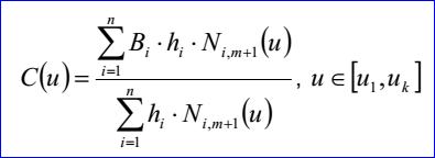 当有理标志位r=0时,是非有理B样条曲线,weight poles有n个三维点B1,...,Bn;当有理标志位r=1时,是有理B样条曲线,weight poles是n个带权控制点对:B1, h1, .... Bn, hn。这里Bi表示一个三维点,hi表示一个[0,1]正实数。当有理标志位r=0时,hi=1。