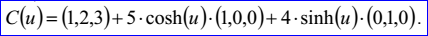 示例数据表示的偏移曲线为偏移距离d=2,方向D=(0,1,0),基曲线B(u)=(1,2,3)+u(1,0,0),其参数方程如下所示: