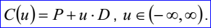 示例数据表示的裁剪曲线为:umin=-4,umax=5,曲线B(u)=(1,2,3)+u(1,0,0)。裁剪曲线的参数方程如下所示: