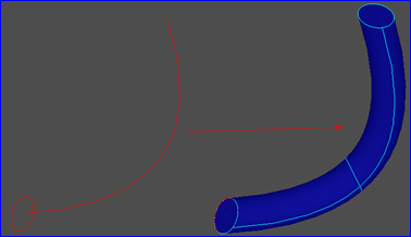 当将顶点拉伸时,会生成一条边;当将边拉伸时,会生成面;当将Wire拉伸时,会生成Shell,当将面拉伸时,会生成体。当将曲线沿一个方向拉伸时,会形成一个曲面,如果此方向为直线,则会生成一般柱面。如果此方向是曲线时,会生成如下图所示曲面: