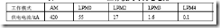 MSP430F449作为控制芯片,因其优秀的低功耗性能作为首选方案。该芯片能够在1.8V~3.6V的电压下工作;具有工作模式(AM)和五种低功耗模式(LPM)。在3V、1MHz时钟驱动下,各个工作模式下的供电电流典型值如表1所示: