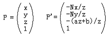 那么我们就可以非常方便的用矩阵以及齐次坐标理论来表达投影变换: