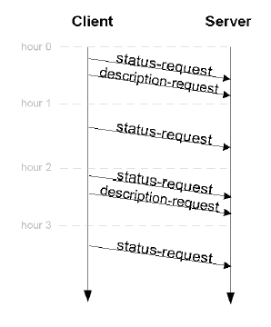 秒一个包)。当检查一个服务器的状态是,客户端首先给服务器发送一个状态请求,然后是每两个服务器描述请求一个状态请求的方式发送;见图