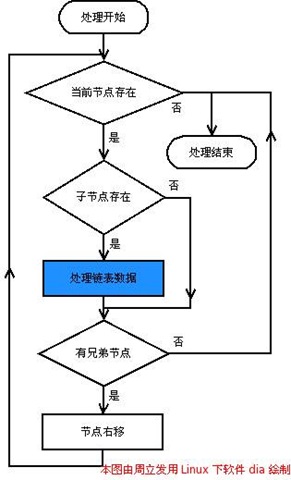 当然,这里采用了递归调用方法,处理子节点的数据时和处理整个链表一样循环处理就是了。