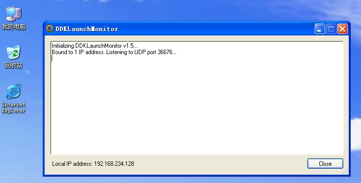 8.一次完成调试后(调试中,虚拟机中的操作系统是不能动的,因为它在被调试,废话,哈哈),虚拟机中的DDKLaunchMonitor对话框会显示一行信息。虚拟机中的操作系统正常运行。